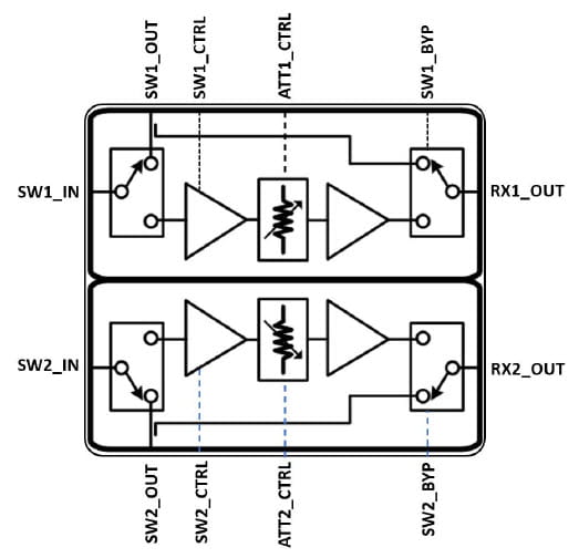 The SKY67208-11 is a dual wideband LNA with fail-safe