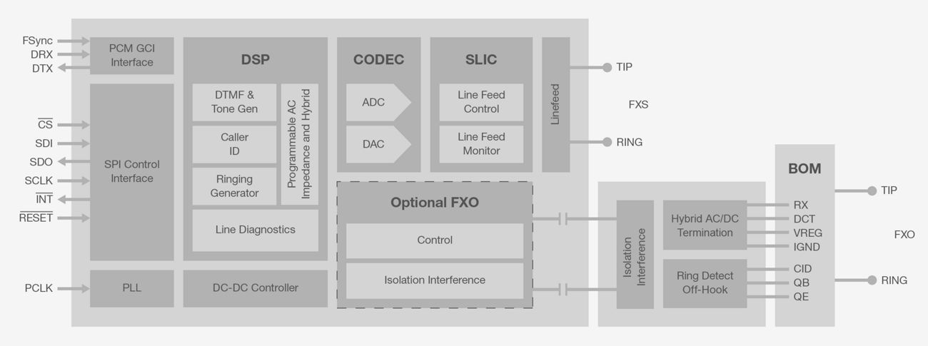 The Si3217x devices are single-channel ProSLIC products that implement a complete foreign exchange station (FXS) telephony interface solution in accordance with all relevant LSSGR, ITU, and ETSI specifications. The Si32178 and Si32179 are the industry’s first two-chip FXS + FXO solution when combined with the Si32911 or Si32919.