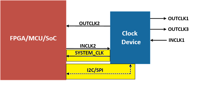 If the clock device’s output SYSTEM_CLK is independent and powers up straight away, what is the issue? In general, there is none. However, what if we place the clock device under serial bus control by the FPGA/MCU/SoC master device itself?