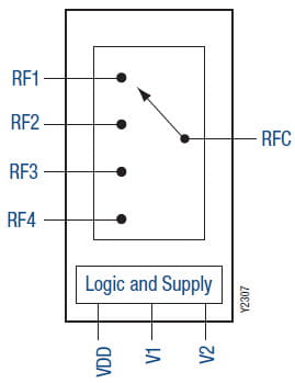 (V1 and V2), the RFC pin is connected to one of four switched RF